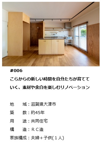 2026.01.27 リノベーション事例に#006 滋賀県大津市の現場をUPしました。 昨年施工をしていました滋賀県は大津市の現場、#006「こらからの新しい時間を自分たちが育てていく、素材や余白を楽しむリノベーション」の竣工写真をリノベーション事例にUPしました。 Share LINE Pin it note リノベーション事例に#005 滋賀県大津市の現場をUPしました。 リノベーション事例に#007 京都府京都市の現場をUPしました。